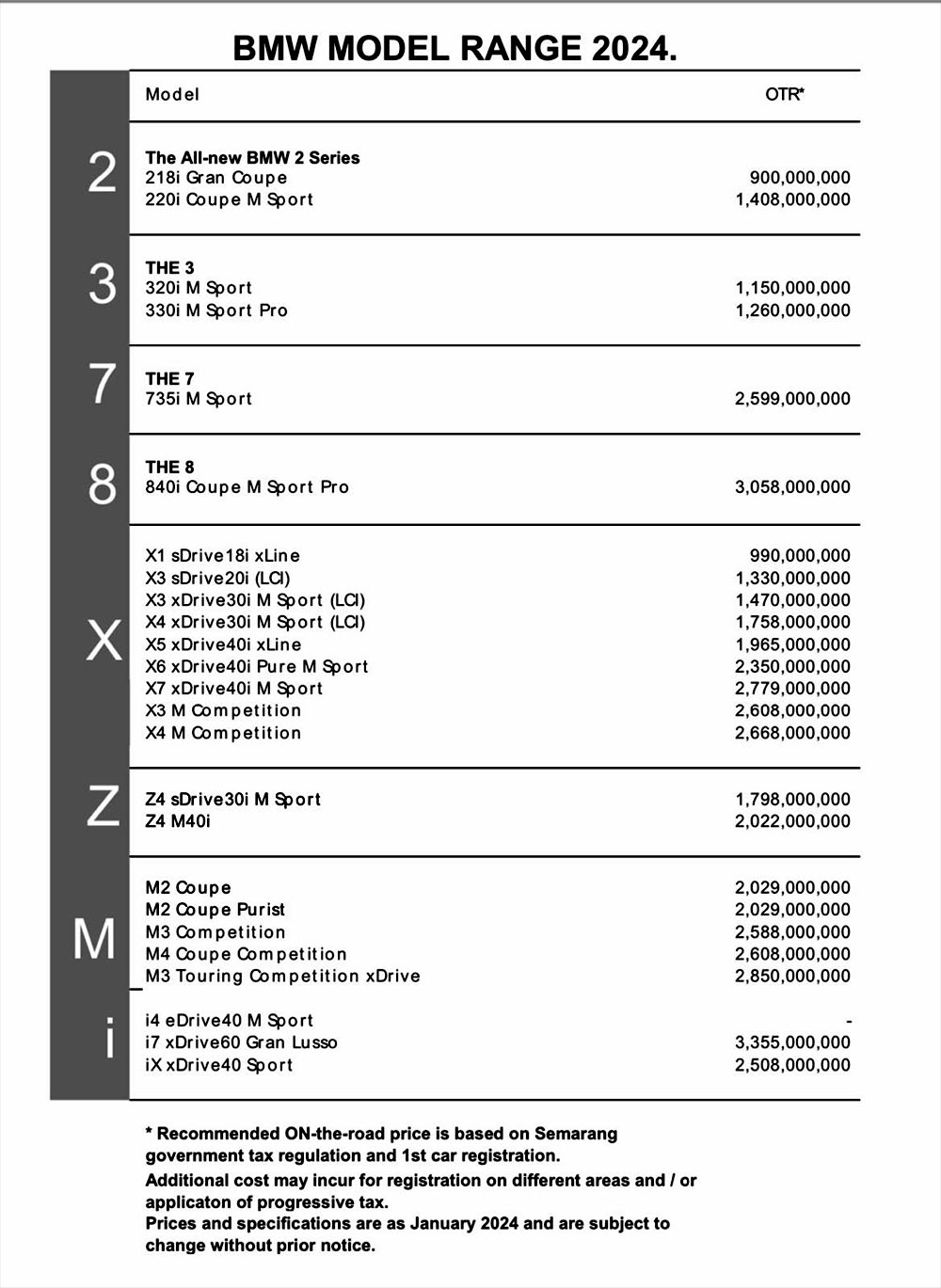 BMW Price List