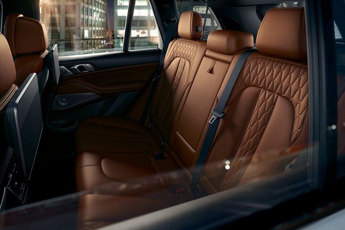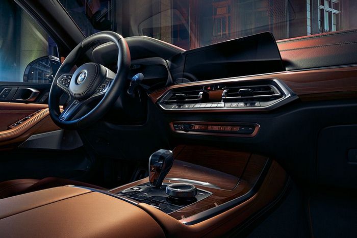 Typical BMW X5 – every detail a statement. The front with the large one-piece kidney grille in a slightly hexagonal shape, the distinctive headlights and the large air inlets all reveal what one can expect: determination on 22″ light alloy wheels. Thanks to the Panorama glass roof Sky Lounge, the interior shows itself from its best side. Precious glass features set exclusive accents and the ambient light creates a special atmosphere.